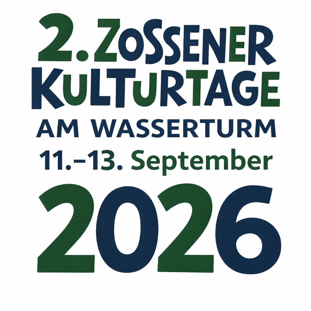 Gleichzeitig verstehen wir den Kulturstammtisch als offene Plattform für Ideen und Engagement. Künstlerinnen und Künstler, Kulturschaffende, Vereine und kreative Initiativen sind herzlich eingeladen, sich einzubringen – mit eigenen Projekten, Ausstellungen, Konzerten oder neuen Veranstaltungsformaten. Gemeinsam möchten wir Kultur in Zossen weiterentwickeln und den Wasserturm dauerhaft als lebendigen Ort der Begegnung etablieren.